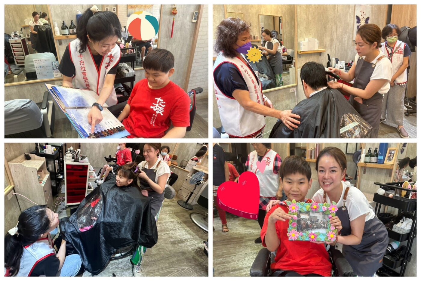 另外,剪髮對於有的學員來說較為敏感,但老闆娘總是很有耐心且小心翼翼的安撫學員,最後也完成了美髮的任務。衷心地感謝老闆娘細心、耐心地服務每位學員,同時也感謝今天來協助我們的志工姊姊們,讓今天的活動如此順利。