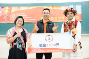圖 學員Zipulu.Thangiradane吉布魯.薩伊菈妲呢榮獲本屆基礎班第一名,基金會執行長 Lowking Nowbucyang許韋晟贈與獎金與獎品,表揚於課程優秀成果。(圖/原語會提供)