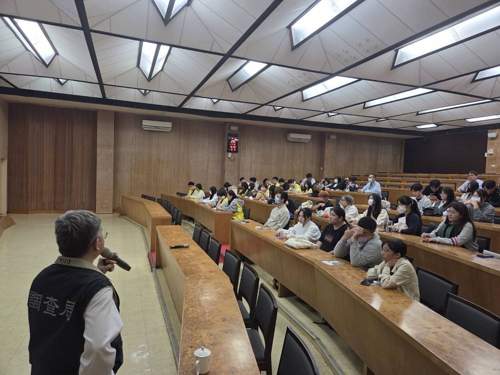 在調查局專人導覽下,參訪內容涵蓋國安維護、反貪腐、防詐騙、洗錢防制及跨國犯罪調查等多面向,並以實際案例解析調查局如何運用科技偵查與跨機關合作守護社會安全。特別是在全民關注的反詐騙與反毒議題中,師生們對調查局利用數據分析、情報整合成功攔阻犯罪的成果印象深刻。