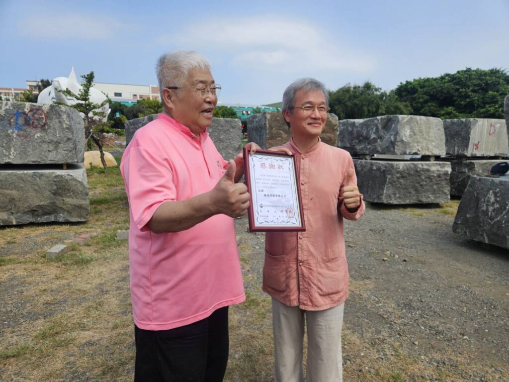 林肇睢說,此次林董事長完全免費捐贈,玻璃廟只付少許海上及陸域的運費。今天剛好整個石頭在卸櫃,而且捐贈的人也剛好從柬埔寨來到這裡,我們非常感謝他義舉。