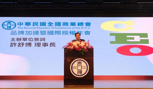 圖:商業總會許舒博理事長於品牌加速暨國際授權年會鼓勵中小企業CEO善用品牌力開拓國際市場。