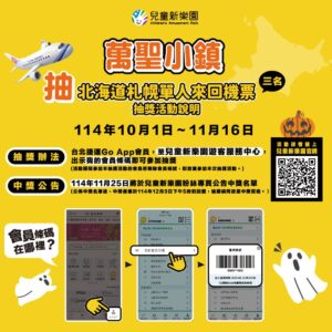 10月24日至26日連續三天,無論大人或小孩,只要身上有萬聖節造型元素,如帽子、披風、妝容或配件,即可享「免費入園」優惠(遊樂設施另行付費)。
