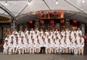 圖 桃園慈護宮主委簡征潭與乙巳年酬恩五朝圓醮大典建醮、圓醮主委林建龍,偕同全體人員進行大合照,共同見證年度宗教文化盛事。(照片/製作單位提供)