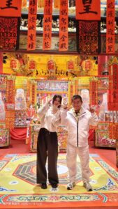 圖 左為慈護宮主委簡征潭,右為《Linking 368 Taiwan》主持人各務禮美奈,透過節目向世界推廣圓醮文化。(照片/製作單位提供)
