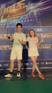 為打造儀式感與專業度,「愛星盃」以紅地毯星光入場揭開序幕,並為每位參賽者準備由台灣運動品牌「久奈司」量身打造的全套羽球裝備與刻名球拍,象徵專屬榮耀與運動精神;場館同步設置VIP貴賓席,讓貴賓近距離感受每場對決張力,呈現宛如頒獎典禮般的賽事體驗。
