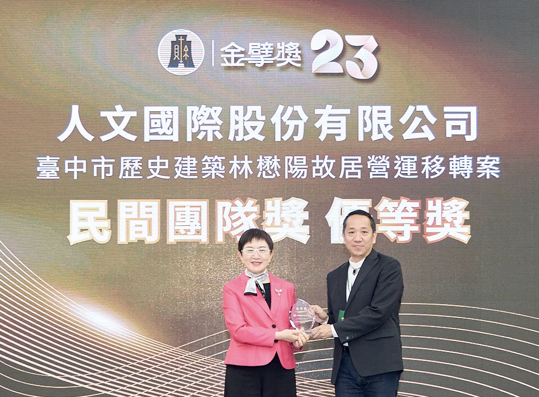 臺中文化資產再受青睞 林懋陽故居營運案獲金擘獎肯定