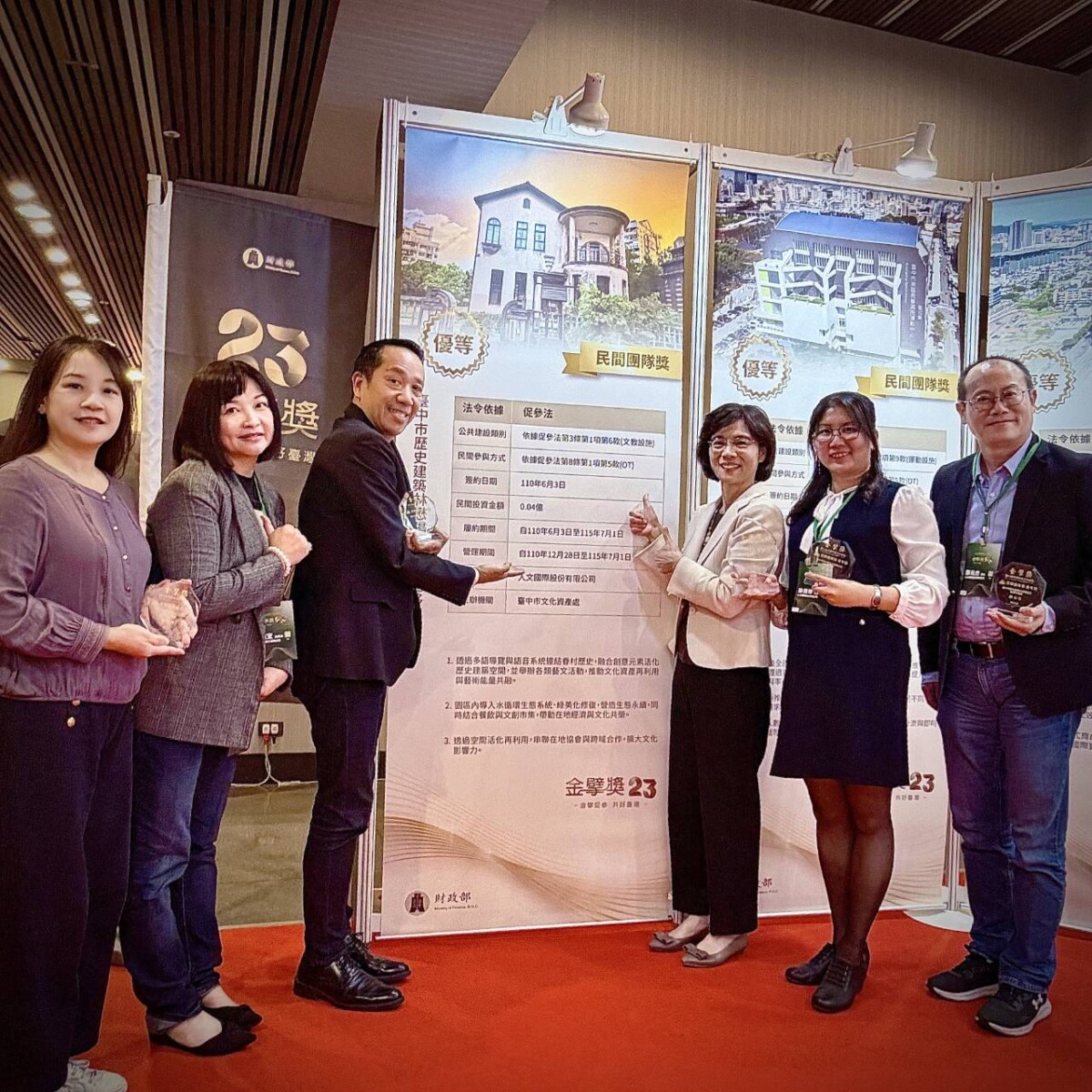 臺中市歷史建築「林懋陽故居」營運移轉案(OT)獲國家級肯定! 此案在財政部主辦的「第 23 屆民間參與公共建設金擘獎」中從眾多參賽作品中脫穎而出,經初評、複評層層審查,最終拿下「民間團隊優等獎」。頒獎典禮於 114 年 11 月 28 日在台北國際會議中心登場,由本案民間營運團隊──人文國際股份有限公司代表受獎。