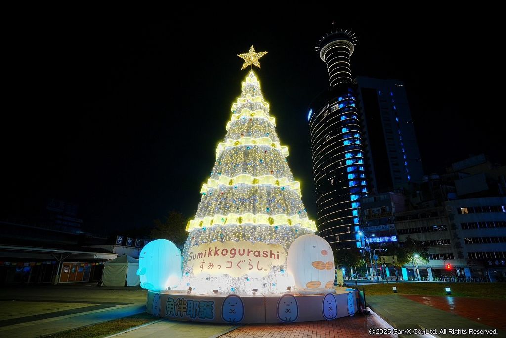2025台中耶誕嘉年華以日本人氣角色IP《角落小夥伴》為主題,在舊火車站前佈置高達18公尺的「耶誕珍甜」耶誕樹,柳綠川沿岸更設置不同主題燈飾,活動未開幕即吸引許多民眾搶拍。台中市長盧秀燕今(12)晚出席點燈儀式,在現場跟民眾一同倒數,時間一到耶誕樹瞬間點亮夜空,宣告嘉年華正式開跑,將一路展至明年元旦,展期歷年最長。