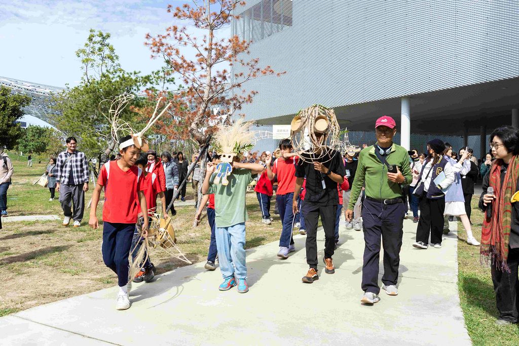 臺中市立美術館開館展「萬物的邀約」展出20國多元藝術作品,為讓藝術融入市民生活,美術館推出一系列公眾活動,邀請市民參與。昨(14)日舉辦的《與自然一起說故事》跨文化遊行,由參展團隊印尼紙月亮偶劇團(Papermoon Puppet Theatre)攜手臺中市博屋瑪國小演出,為市民帶來一場充滿想像力的跨文化藝術活動。