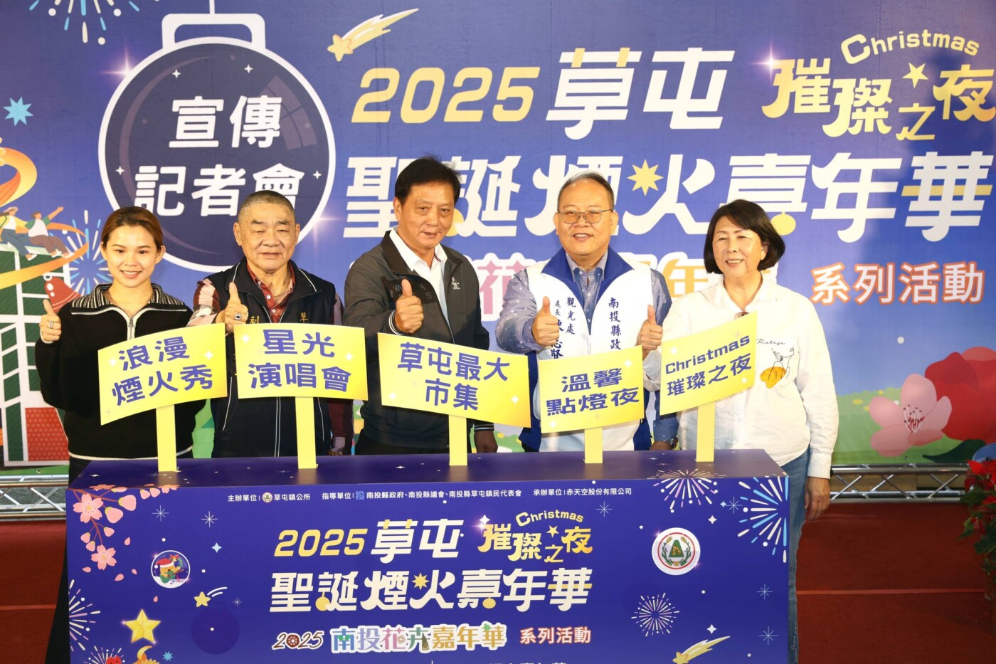 為迎接年末旅遊旺季,南投縣政府與草屯鎮公所首度攜手合作,整合在地教會與觀光資源,推出歷年規模最大的「草屯聖誕煙火嘉年華」。活動將於12月24日、27日及28日登場,連續三晚施放璀璨煙火,並邀請安心亞、在地天團草屯囝仔等人氣歌手輪番演出,打造草屯最熱鬧的冬季觀光盛事。