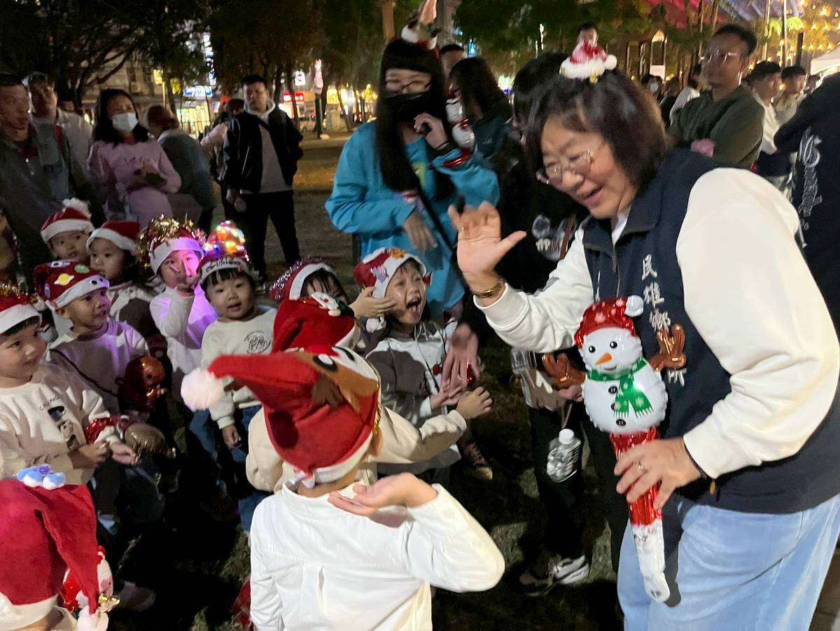 聖誕佳節將近,民雄鄉立民雄幼兒園20日晚間在民雄早安公園舉辦「歡樂聖誕晚會」,現場聚集許多親子家庭,孩子們的笑聲與家長的掌聲交織,洋溢溫馨歡樂的節慶氛圍。