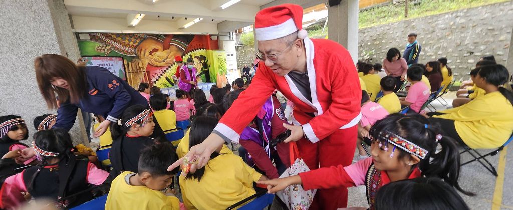 都市人氣美食進入偏鄉,學童開心排隊品嚐聖誕大餐。