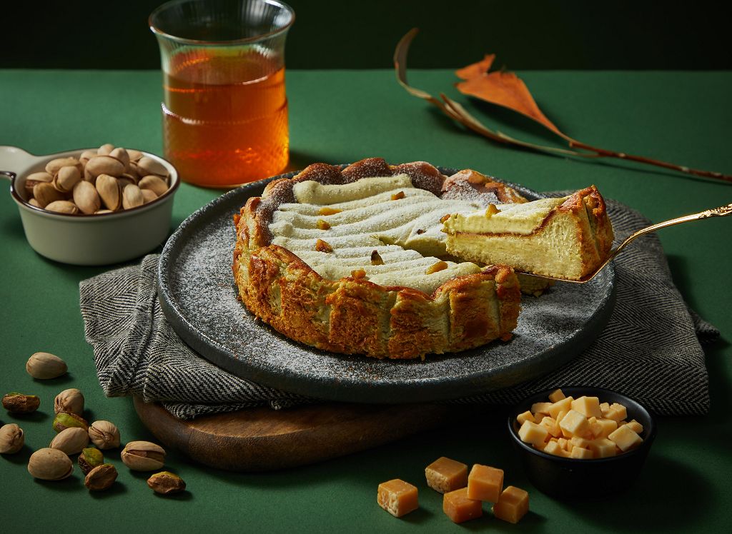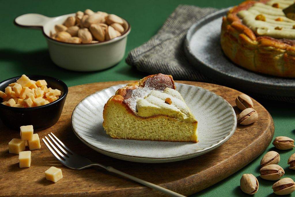 其中最受矚目的新品為「奶蓋開心果熟成巴斯克」,以高比例開心果製作,蛋糕經高溫烘焙後再熟成 12 小時,外層微焦、內裡綿密滑順,頂層鋪上細緻的開心果奶蓋,堅果油脂香氣與乳酪濃郁風味交融,成為開心果控春節必收甜點。