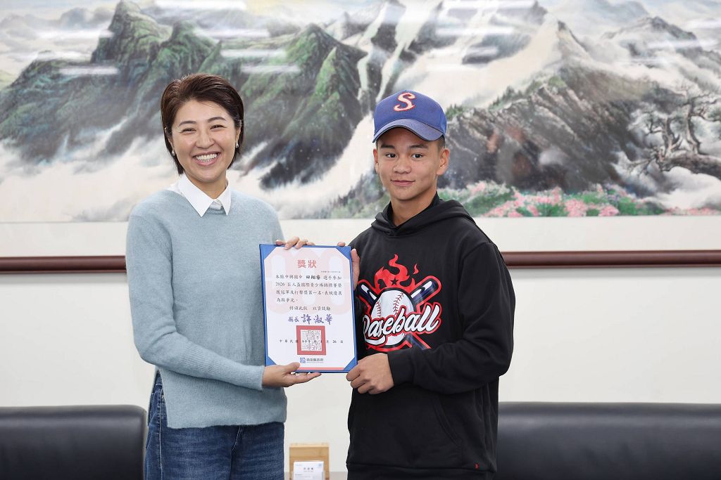 縣長許淑華26日上午於縣長室接見表揚全體隊職員,頒發獎狀及營養金,肯定選手與教練團的努力與付出,並期勉小將持續精進,在更高舞台發光發熱。