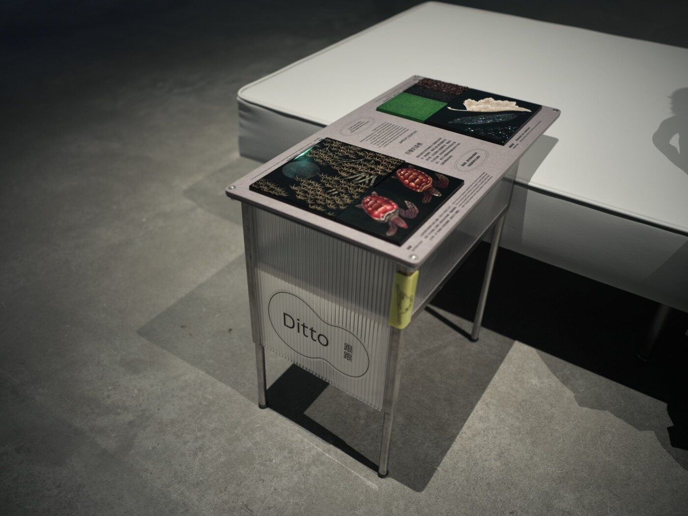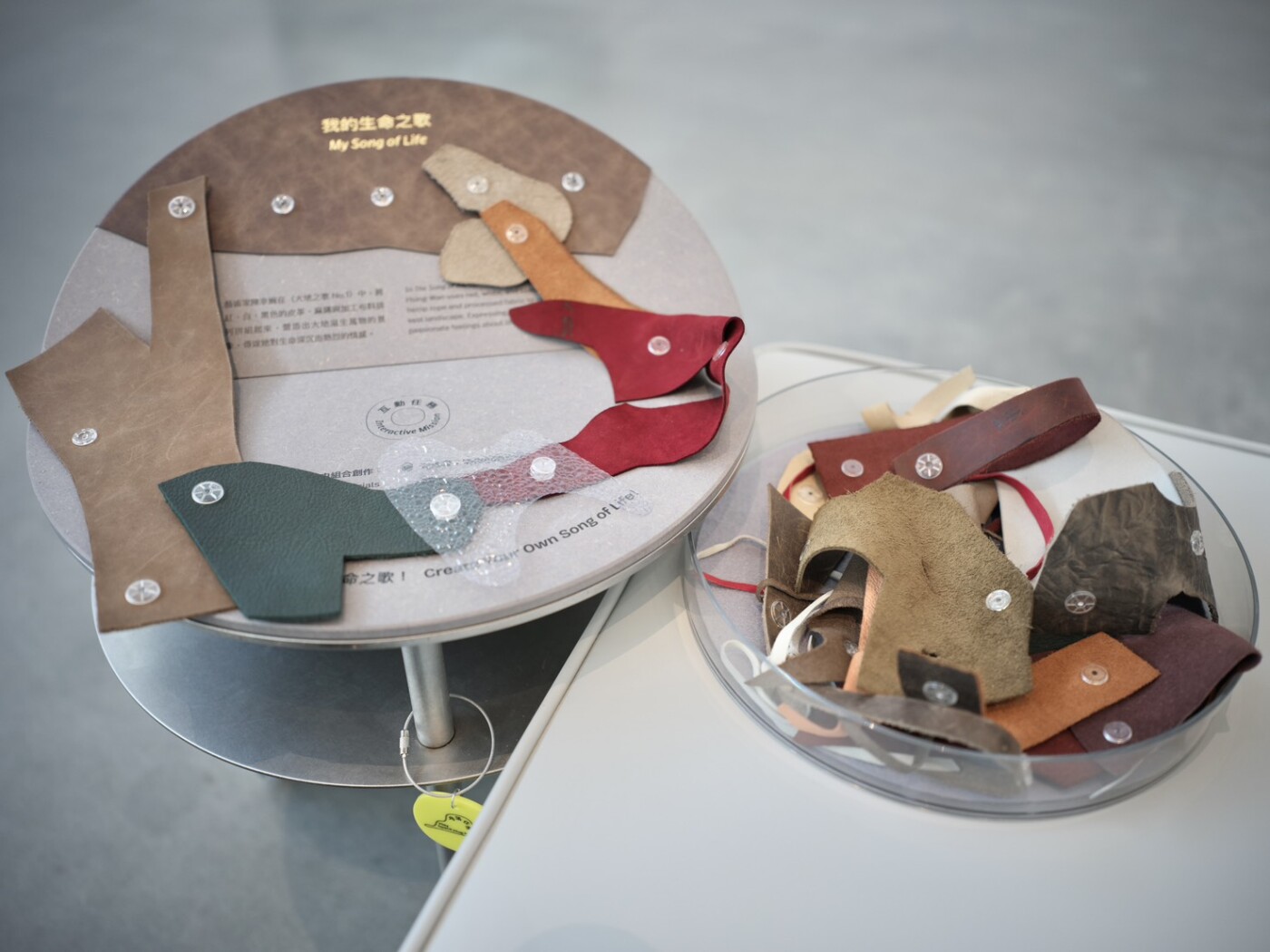 「跟跟」則透過材質板引導觀眾感受人間國寶王清霜〈佇聆孔雀〉中的漆藝技法