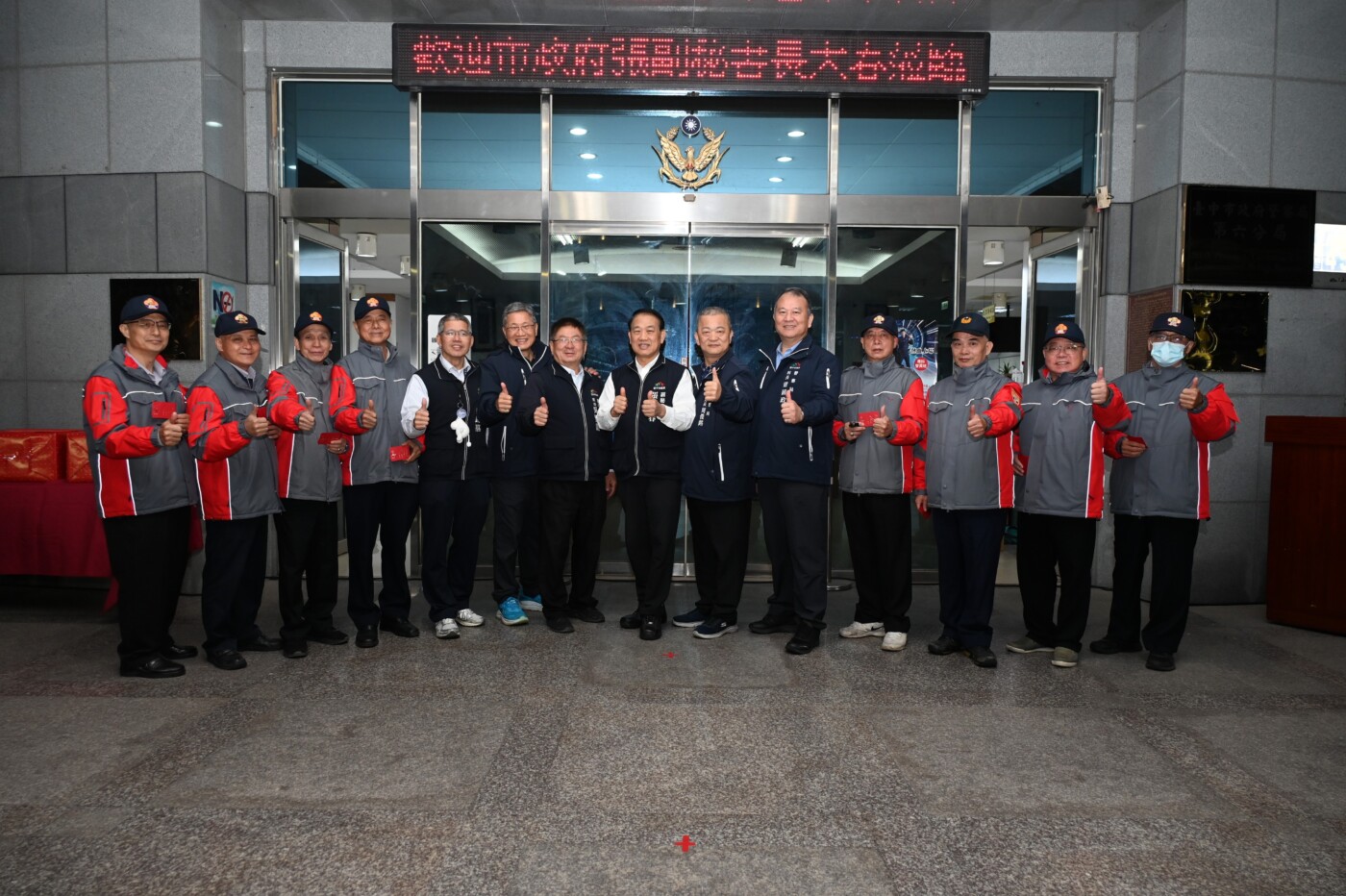 市府團隊在警察局蕭姓科長等人陪同下抵達第六分局,現場由警、民力代表熱情迎接,氣氛熱絡。張大春致詞表示,第六分局轄區屬臺中市重要熱區,勤務繁重,對於員警與各協勤民力無怨無悔投入治安與交通維護,表達高度肯定,並期勉持續攜手努力,打造臺中成為更宜居、安全的城市。