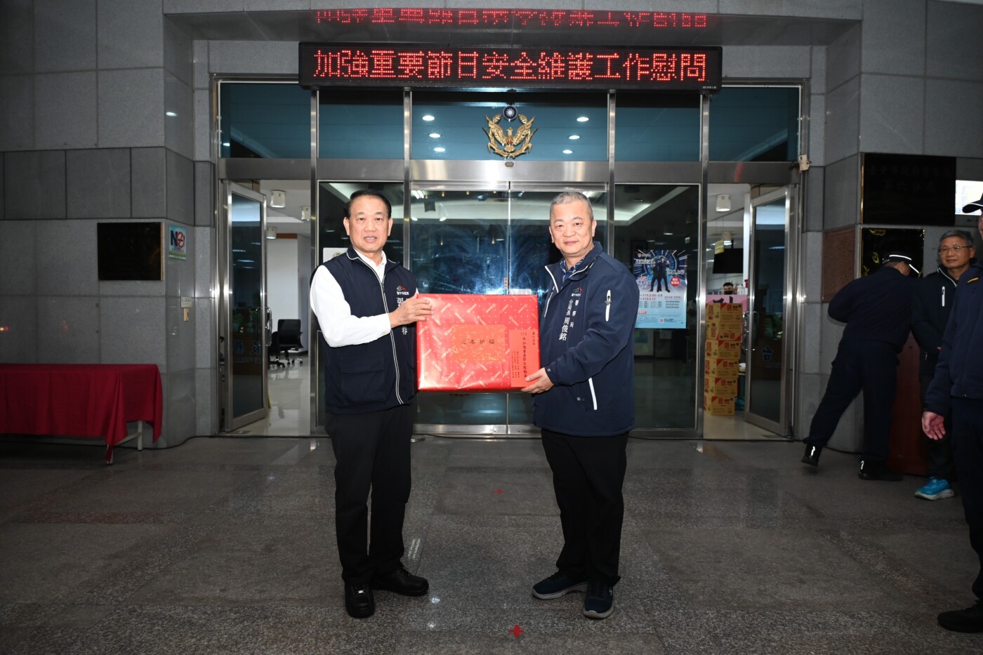 市府副秘書長張大春春節前夕慰問警六分局員警與協勤民力,致贈慰問品表達感謝。