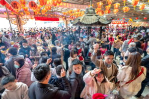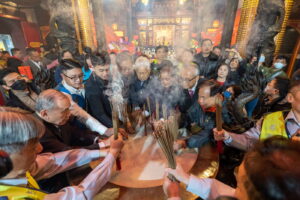 南崁五福宮除夕夜集體安頭香,象徵有福同享,人人共享好運,深受大眾肯定。(圖/南崁五福宮提供)