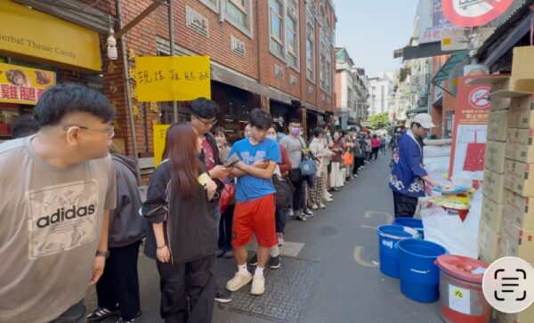 圖:詹惟中現身大稻埕月老廟前,親授「發財油」招財秘術,豪發108個開運紅包。(圖/翻攝自網路)
