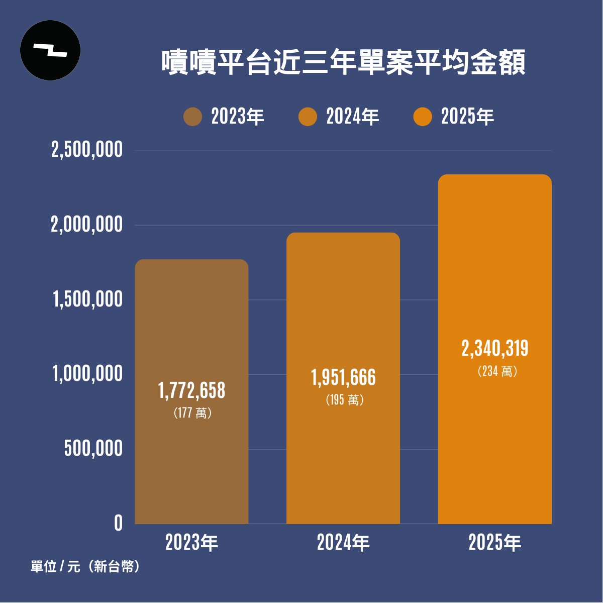 台灣最大群眾集資平台嘖嘖(2/24)公布 2023–2025 年營運數據,年度總集資金額、平均單案金額與提案總數「三項指標」同步創新高。年度集資金額自 2023 年 27 億元、2024 年 29 億元,成長至 2025 年 35 億元;平均單案金額也由 177 萬元提升至 234 萬元。平台預估,累積總集資額可望於 2026 年第二季突破 200 億元。