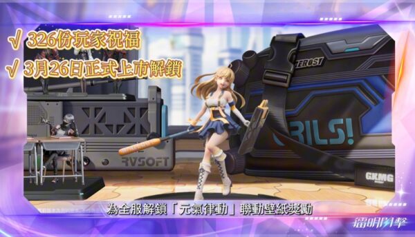 當模型少女的精緻質感遇上3D成女的張力,這場跨次元碰撞將會激發怎樣的化學反應?在最終答案揭曉之前,《鐳明閃擊》先行帶來了一手聯動福利資訊,玩家只要在上市當日起登錄遊戲,就能從遊戲的信箱中獲得超級還原的模型少女擺件「優紀來了」!同時遊戲社群正在舉辦祝福徵集活動,只要官方收集到指揮官們和主人們的祝福達到輕鬆的326份目標時,遊戲將會為全服解鎖「元氣律動」聯動桌布獎勵!讓優紀常駐遊戲主頁,和其他遊戲擺件一起放置在遊戲主頁,陪伴大家在未來度過的每個春夏秋冬~