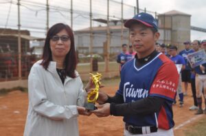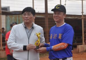 圖說:澎湖縣115年首長盃慢速壘球錦標賽今天下午在文澳棒壘球場開幕,由副縣長林皆興主持,首先完成比賽的機關組於開幕典禮上頒獎。(黃政義攝)
