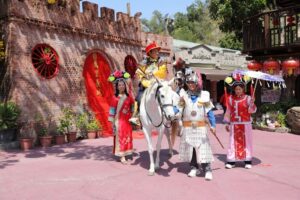 園區入口設有古裝影視街,重現龍門客棧、開封府等經典場景,遊客可租借古裝體驗穿越時空的拍照樂趣。沿途另有兵馬俑與皇宮造景區,擺設大量雕像與古代建築,增添歷史氛圍,成為熱門打卡熱點。