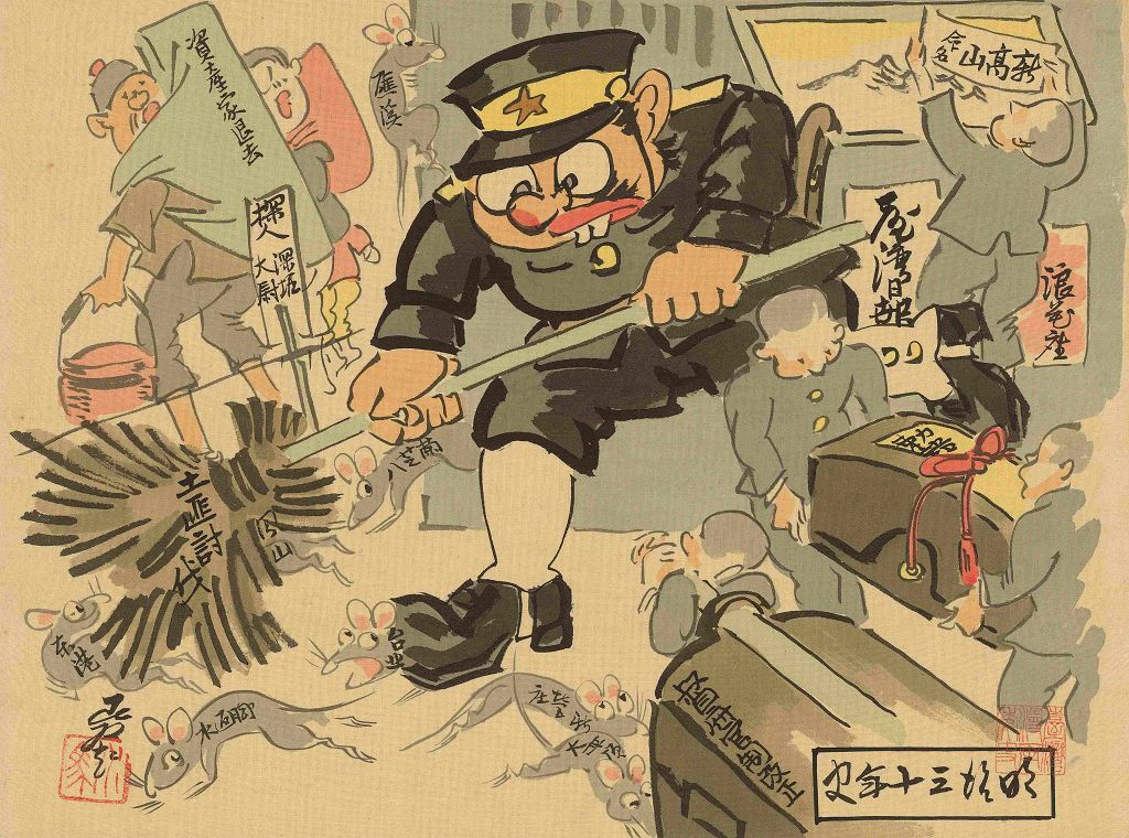 國島水馬《漫畫臺灣年史》,1931,膠彩絹本,上冊:26_×_35_公分,共24頁_、下冊:26_×_35_公分,共26頁。圖片來源:臺中市立美術館提供