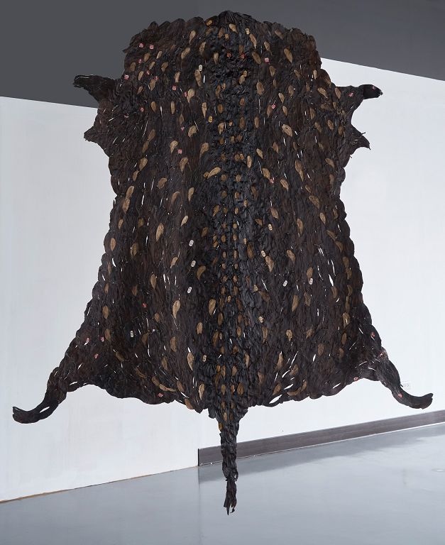 羅懿君〈鹿革〉,2016,風乾香蕉皮、生漆,220_×_260公分。圖片來源:藝術家提供