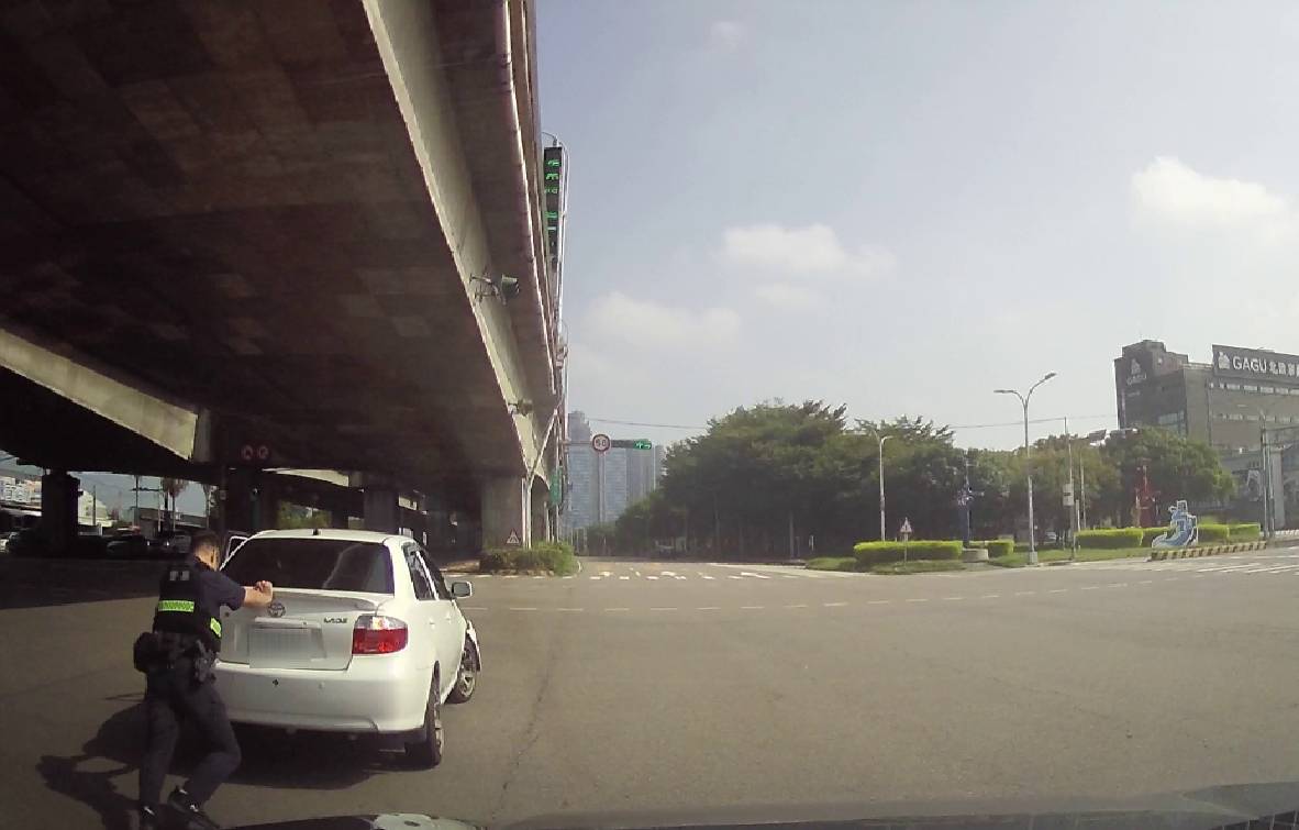 臺中市第六分局協和派出所警員劉泰頡,日前駕駛巡邏機車在西屯區臺灣大道四段與工業區一路口等紅綠燈時,眼角瞄見快車道上一輛自小客車趁紅燈時右轉,企圖鑽空子、規避等紅燈,卻完全沒察覺巡邏警車就在不遠處。
